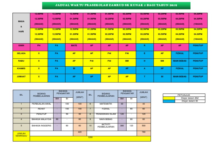Doc Jadual Waktu Prasekolah 2020 Prasekolah Sk Wangsa Maju Zon R10 Nazatul Azlin Hamzah Academia Edu