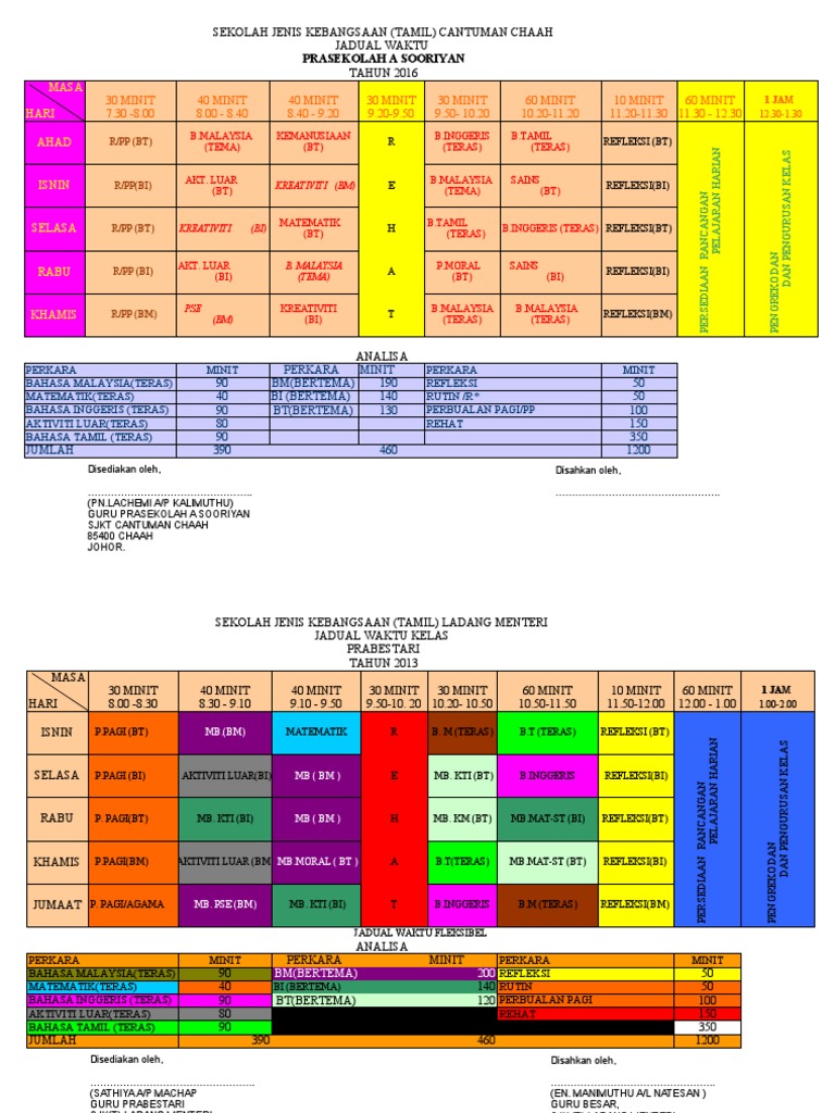 2a Cadangan Jadual Waktu Sem 1 2 Pdf
